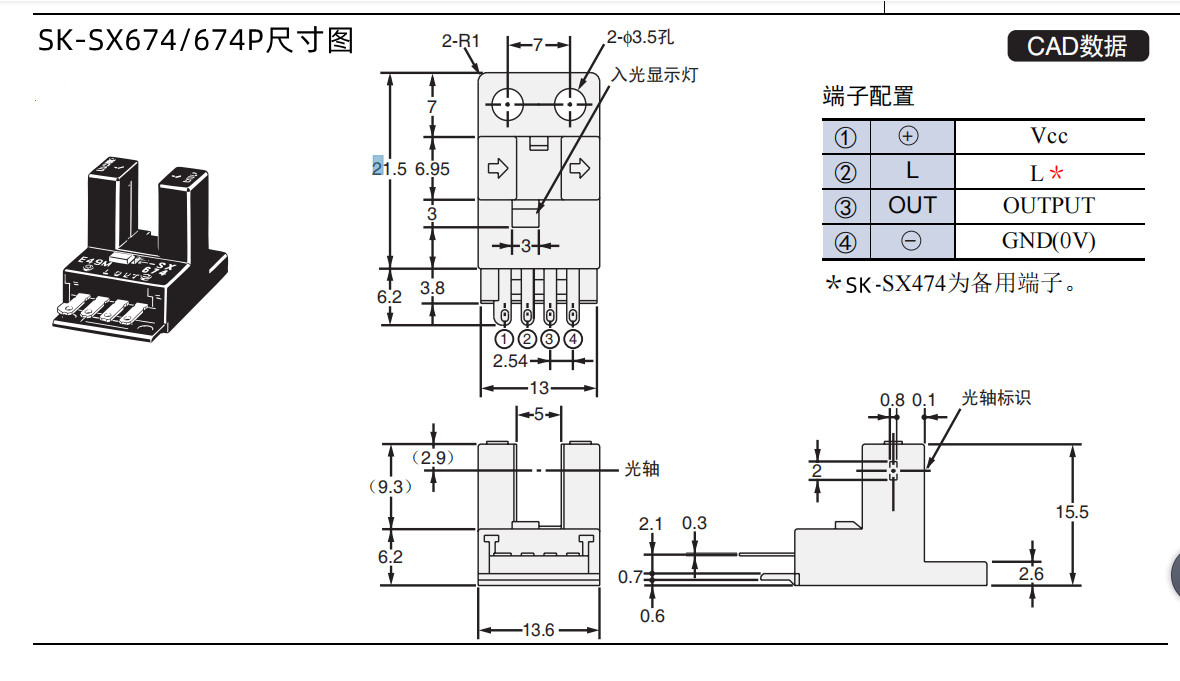 感应器是我司自主研发生产的一款光电型传感器,质量轻,体积小,响应快,感应可调,工作稳定特点。本系列规格包含SK-SX670,SK-SX671,SK-SX672,SK-SX673,SK-SX6704,SK-SX675,SK-SX676,SK-SX677系列。每一款都有NPN和PNP型。