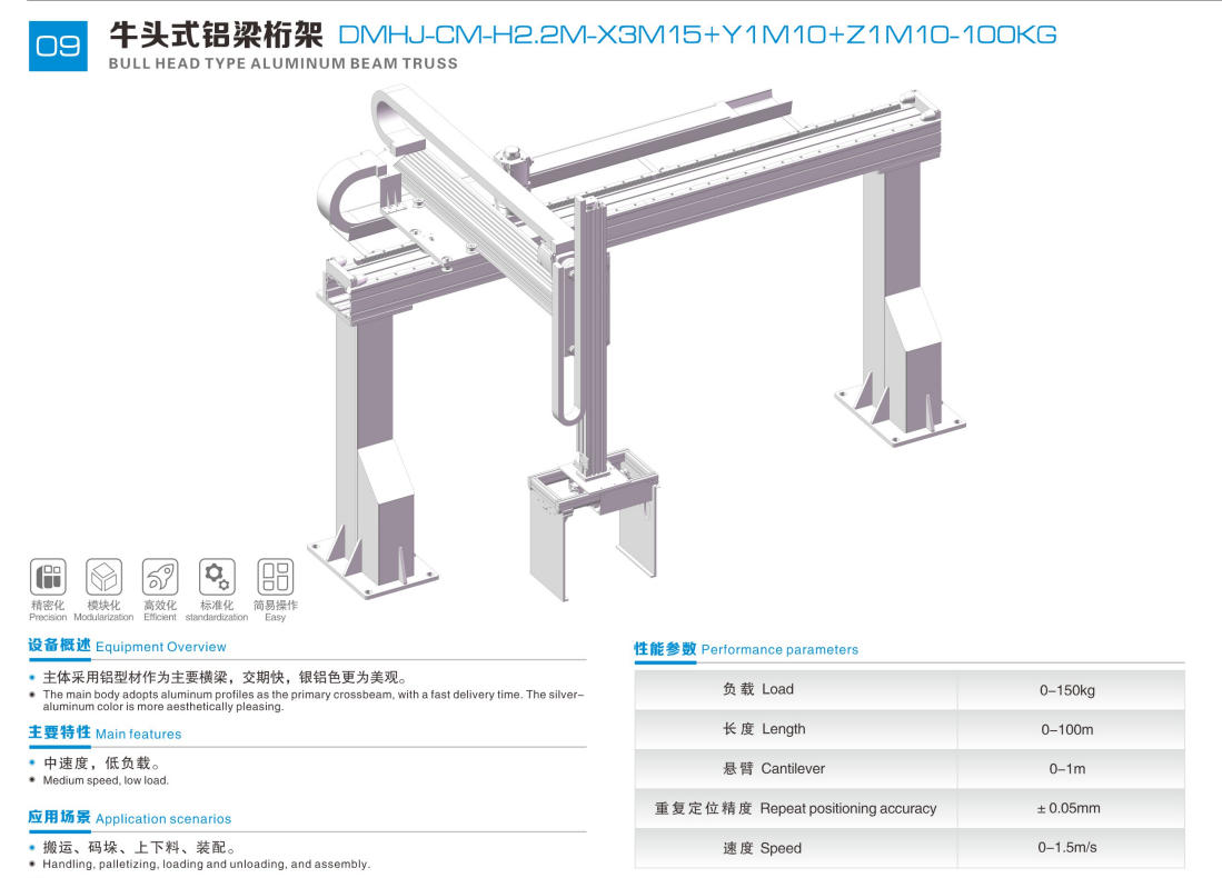 设备概述:主体采用铝型材作为主要横梁,交期快,银铝色更为美观。