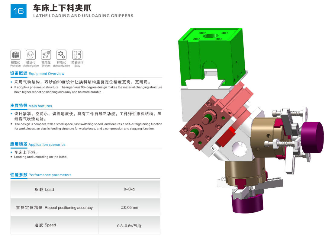 The design is compact, with a small space,fast switching speed,and features a self-straightening functionfor workpieces, an elastic feeding structure for workpieces, and a compression and slagging function