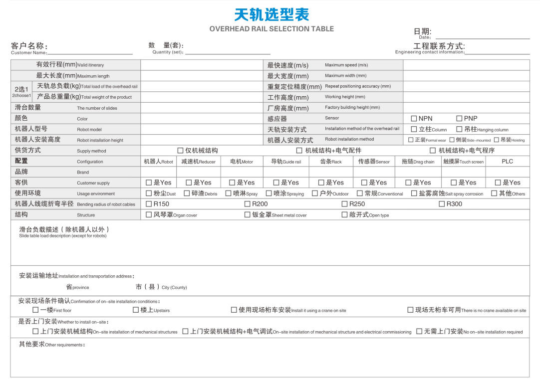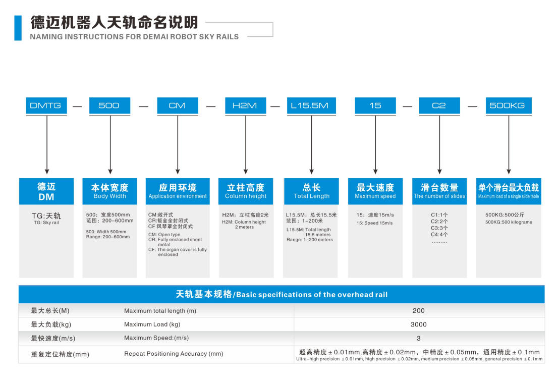 The overhead rail is a custom-made product. For details, please contact our company staff.